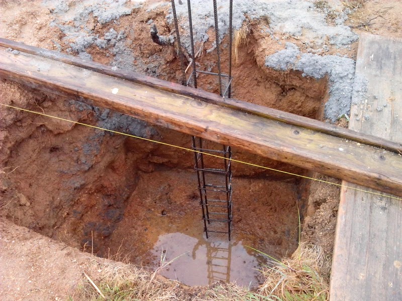 We have moved forward again a little since our last posting, but the bad weather the past few days has once again hampered progress. You will see from the latest few photos here that we do now have some concrete and the start of some metal work, but you will also see the horrible low cloud and wet ground. This does have some benefit I guess in it gives time for the concrete to set completely and we are progressing, (ever the optimist).